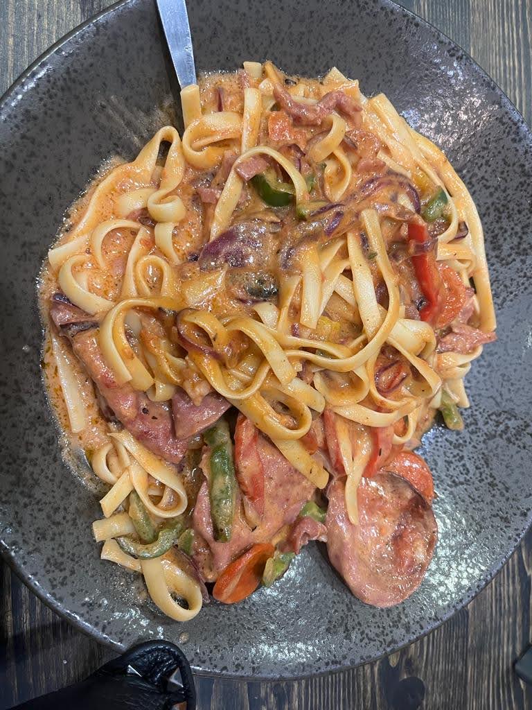 Food was great and service was quick. Ordered the Monstorous pizza 42cm.. was awesome and filled with meat. For starters we had creamy livers ....was a huge serving could easily feed 3.